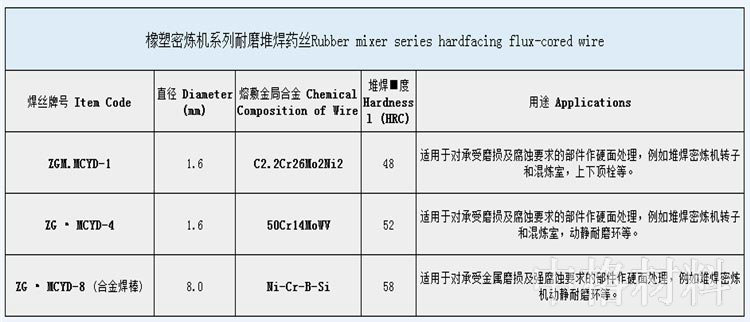 產(chǎn)品名稱:橡塑密煉機(jī)系列耐磨堆焊藥芯焊絲
